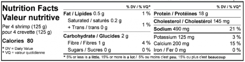 Shrimp, Water, Garlic, Maltodextrin, Modified Corn Starch, Natural Lemon Flavor, Salt, Sugar, Spices, Xanthan Gum, Corn Syrup, Yeast Extract, Silicon Dioxide, Citric Acid, Sodium Tripolyphosate (for moisture retention).
