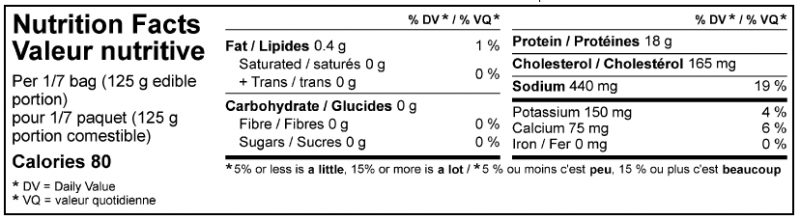 Shrimp, Salt, Sodium tripolyphos-phate, Sodium metabisulfite.